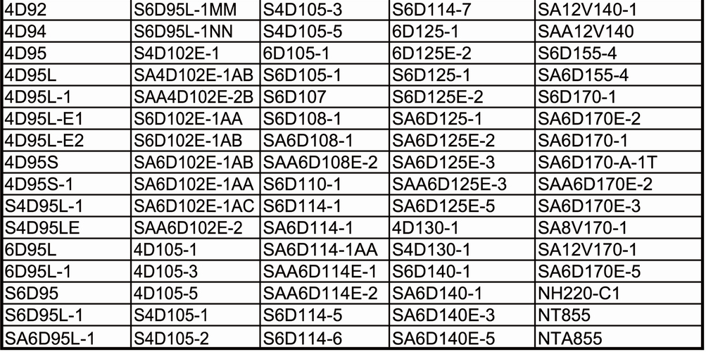 ENGINE MODELS for KOMATSU